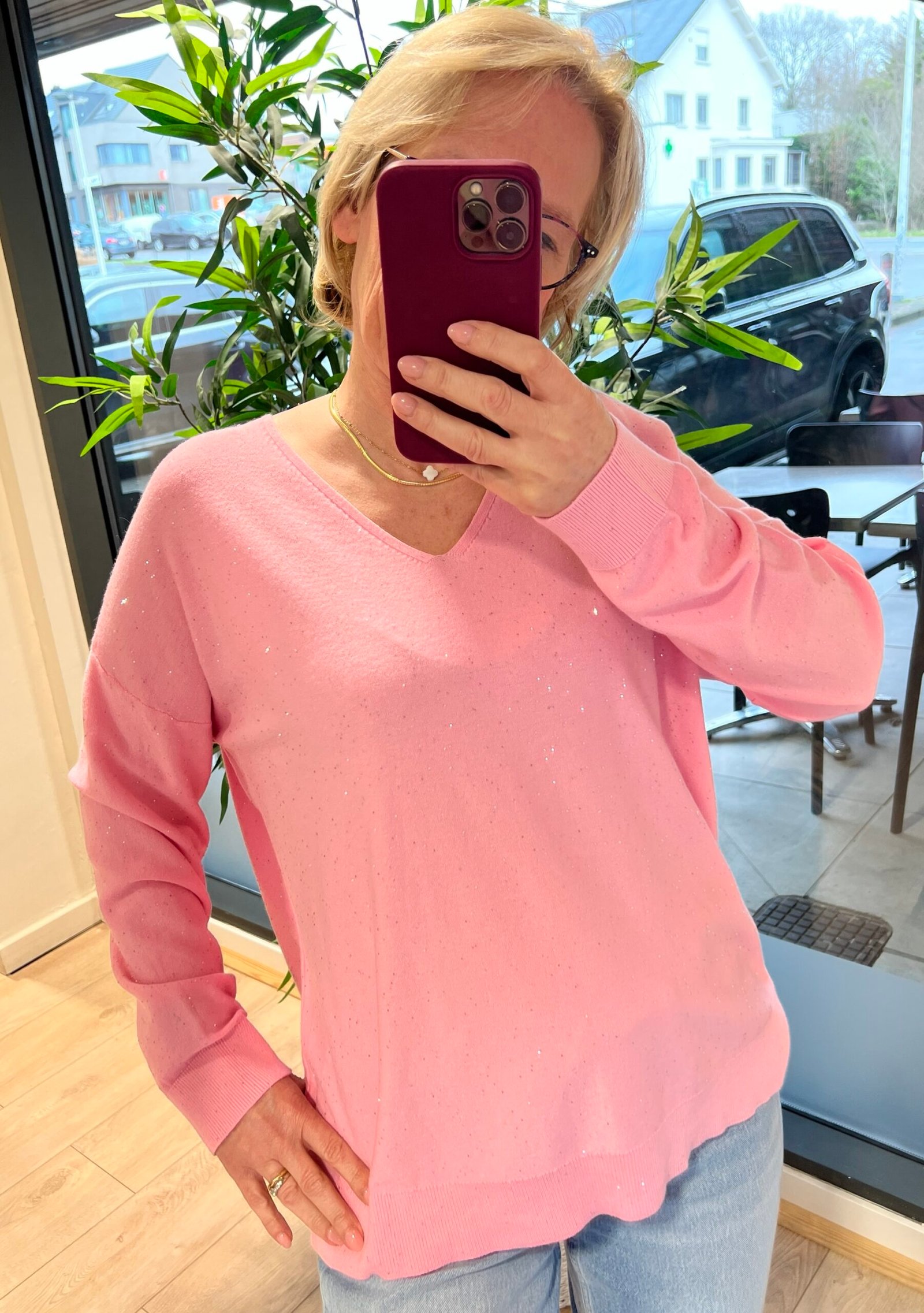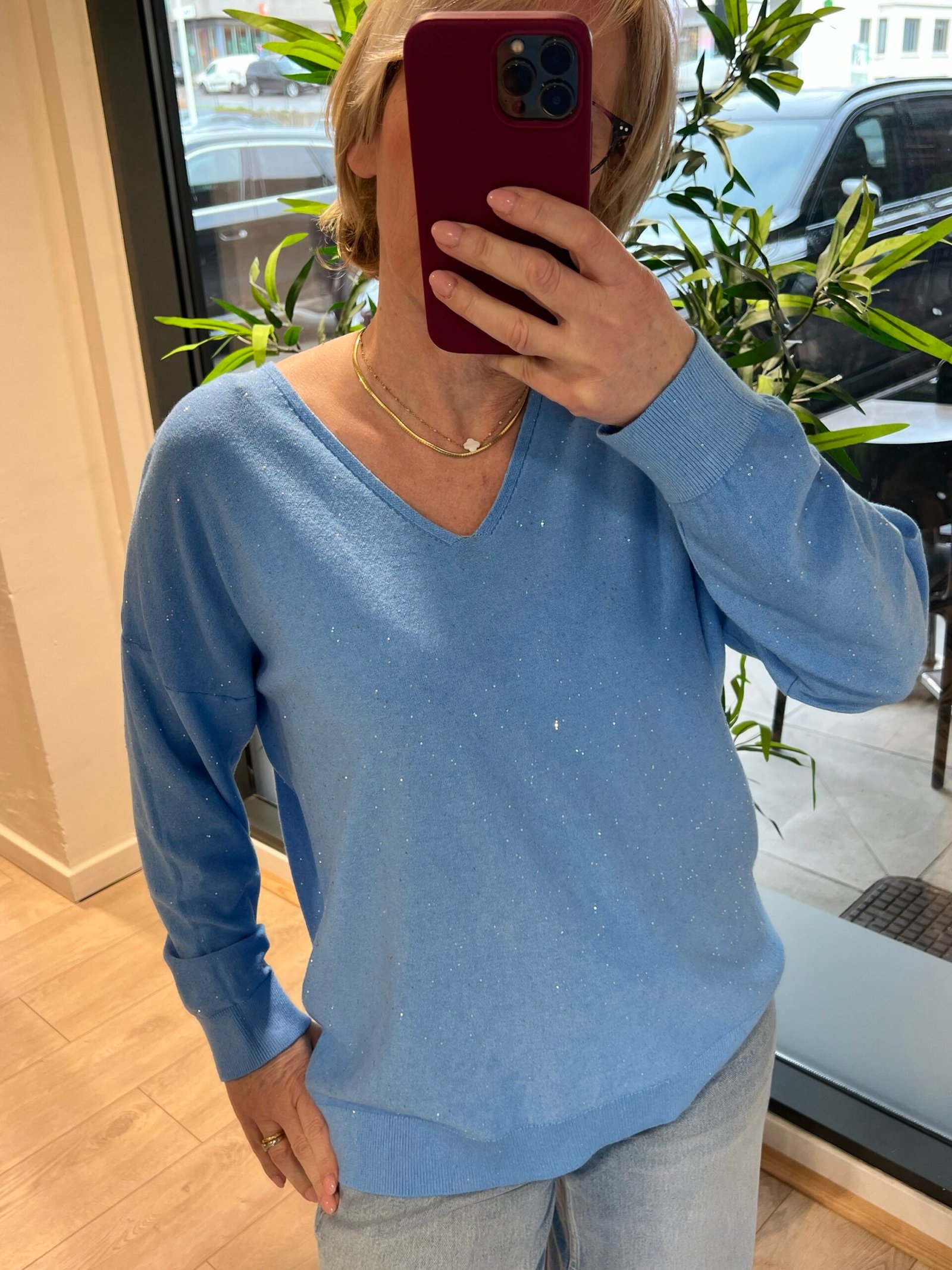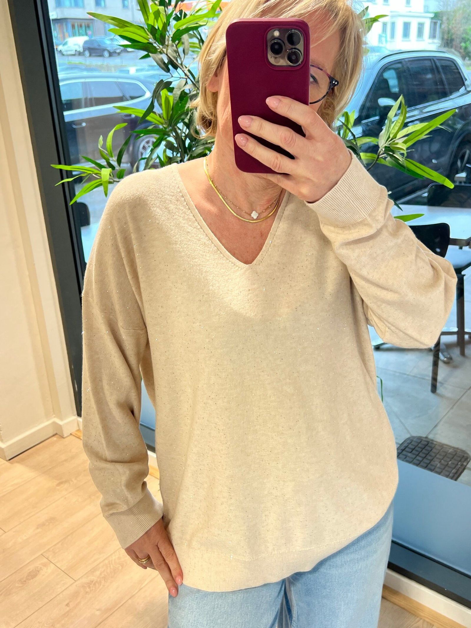 Pull paillettes argentées.